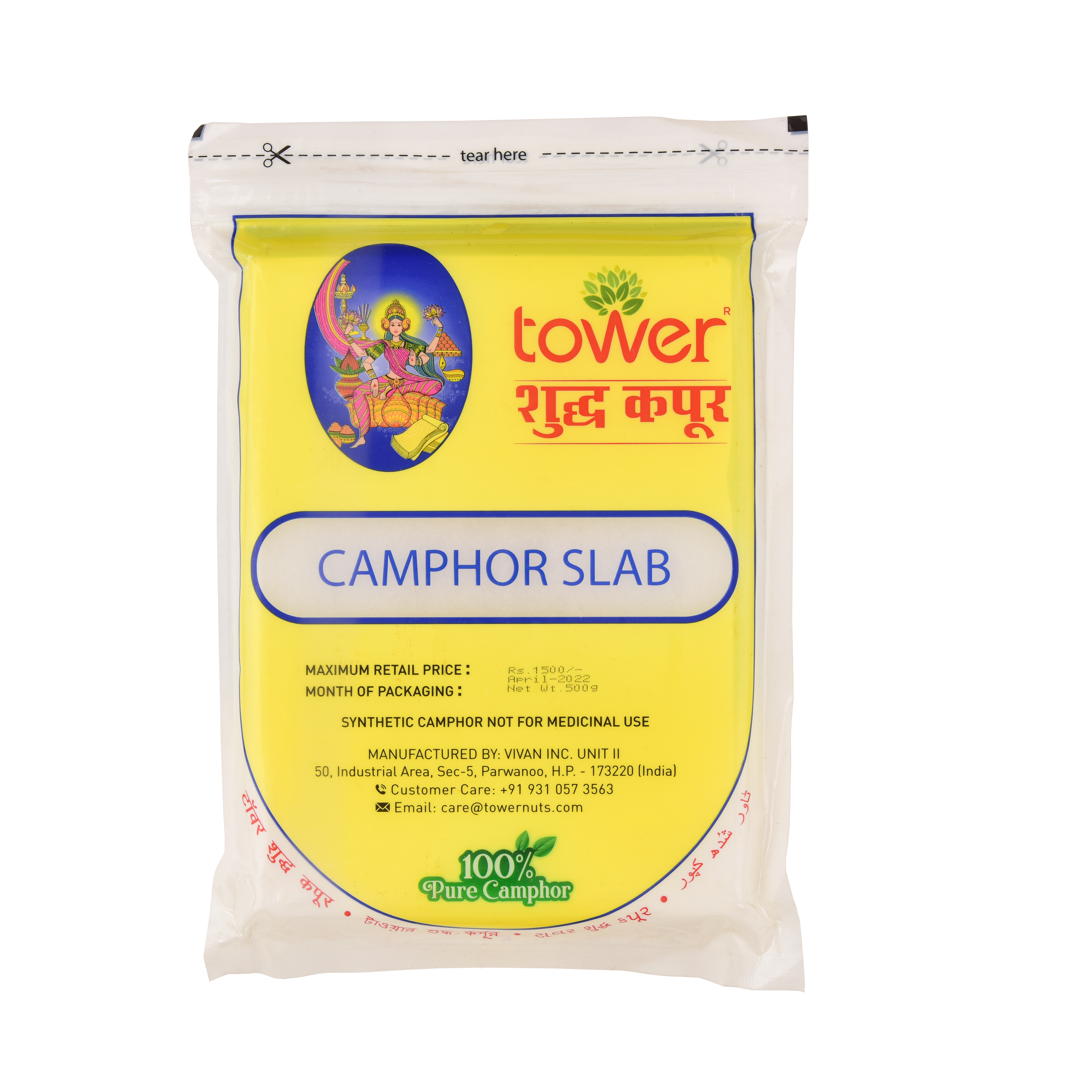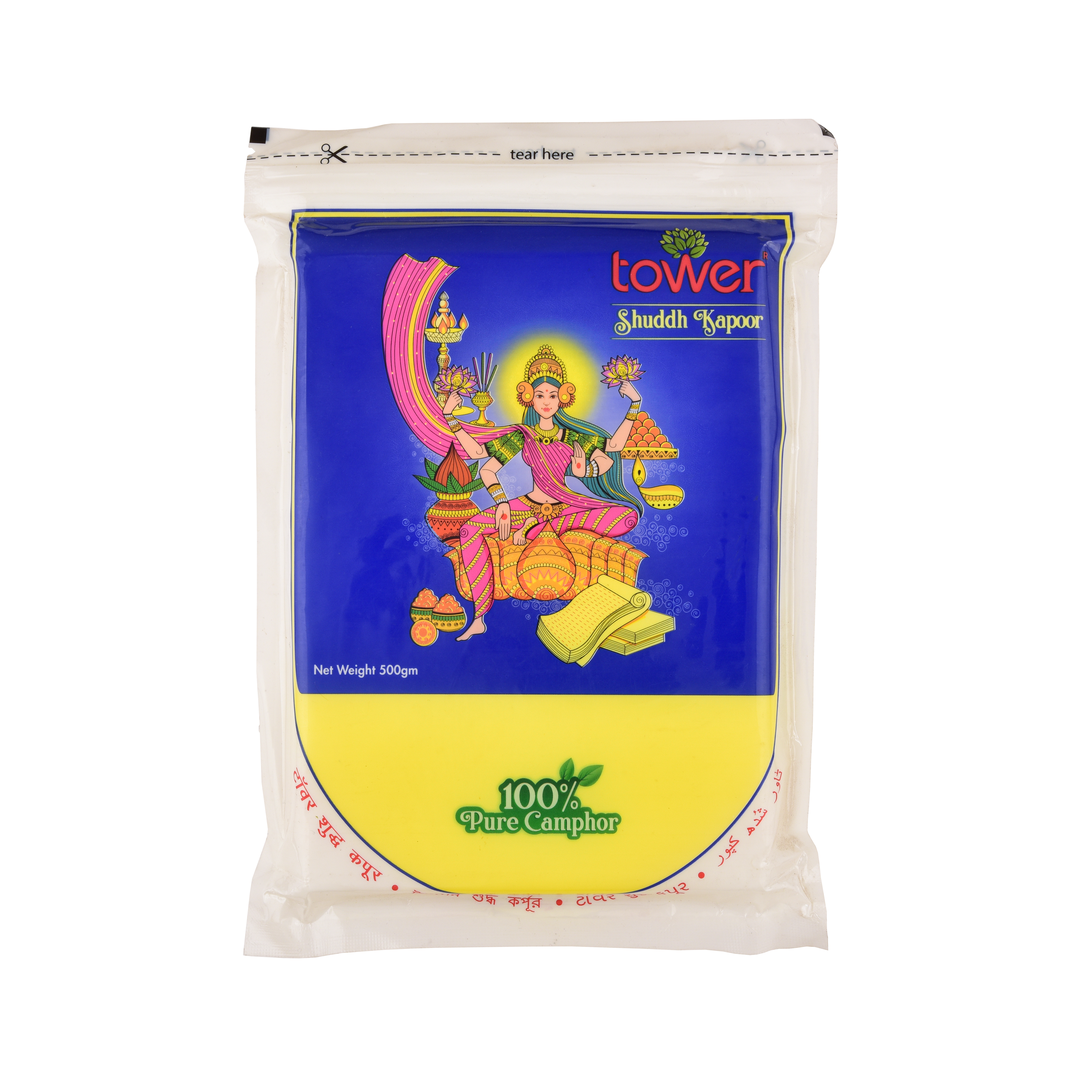 Tower Sudh Camphor is a pure, natural product widely used in Hindu rituals and pujas. Known for its aromatic and purifying properties, it is often burned as an offering to deities, creating a serene and spiritual atmosphere. The soothing fragrance of Sudh Camphor symbolizes the dissipation of negative energies, promoting peace and positivity in the surroundings.